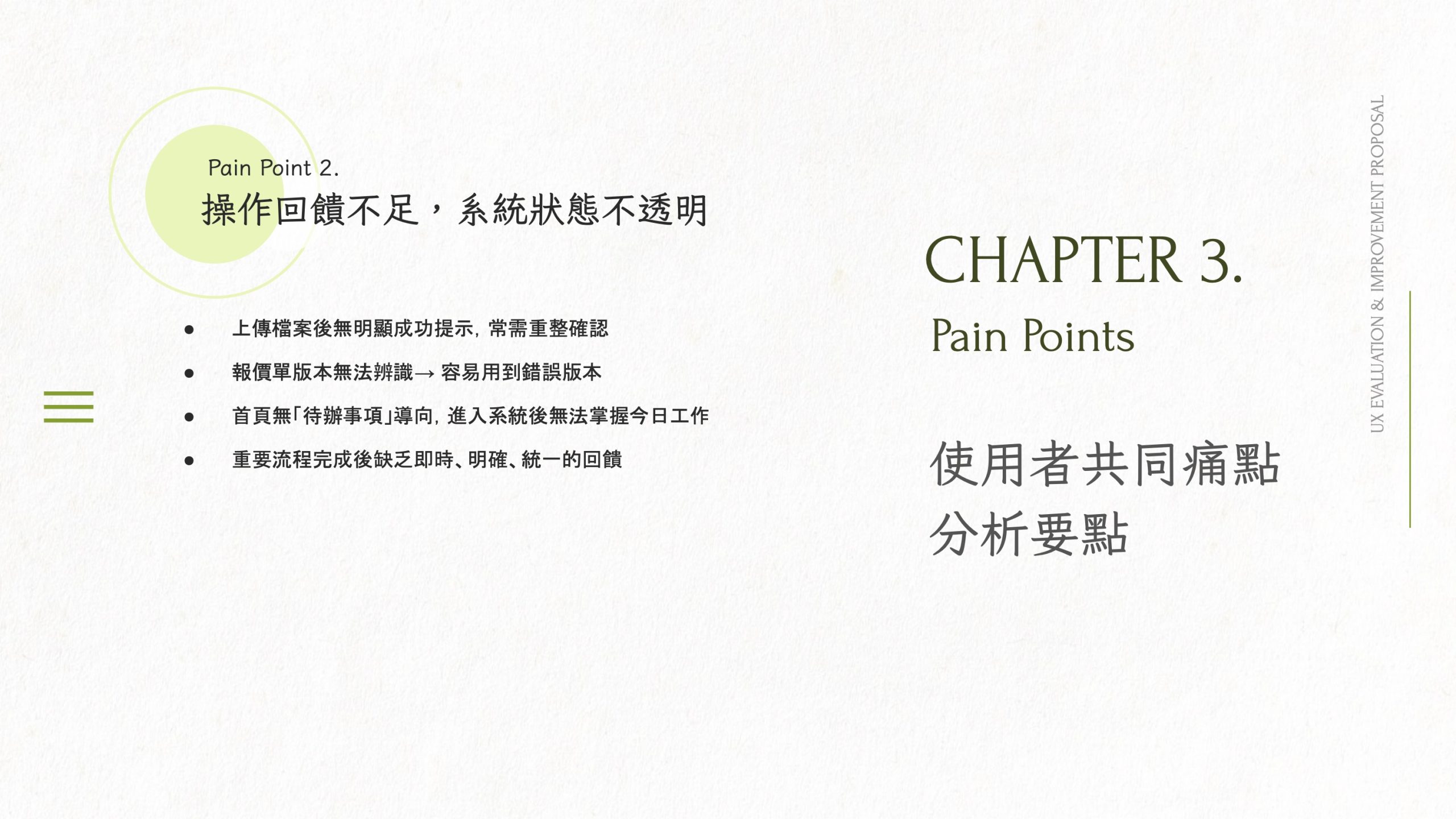 Long-term (1.5+ years): establish a design system and continuous evaluation (usability comparisons, log analysis, annual surveys / focus groups)
